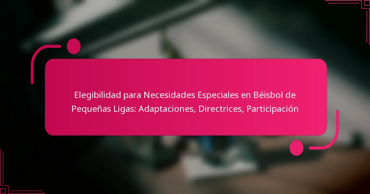 La elegibilidad para jugadores con necesidades especiales en la Liga Pequeña de Béisbol se determina mediante criterios específicos que acomodan diversas discapacidades. Estos requisitos aseguran que todos los niños, independientemente de sus desafíos, tengan la oportunidad de participar en el béisbol.