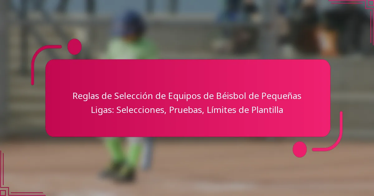 La selección de equipos de béisbol de Little League implica reglas y procesos específicos que aseguran oportunidades justas y equitativas para los jugadores. Estas reglas generalmente incluyen selecciones, pruebas y límites de plantilla, que ayudan a mantener el equilibrio competitivo y mejorar la experiencia general para los participantes.